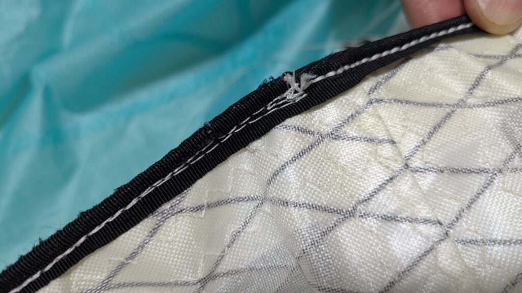 この太さは家庭用ミシンでは全然無理なので工業用ミシンが必要になる。どう考えても修理に出したほうが安いんだけどね