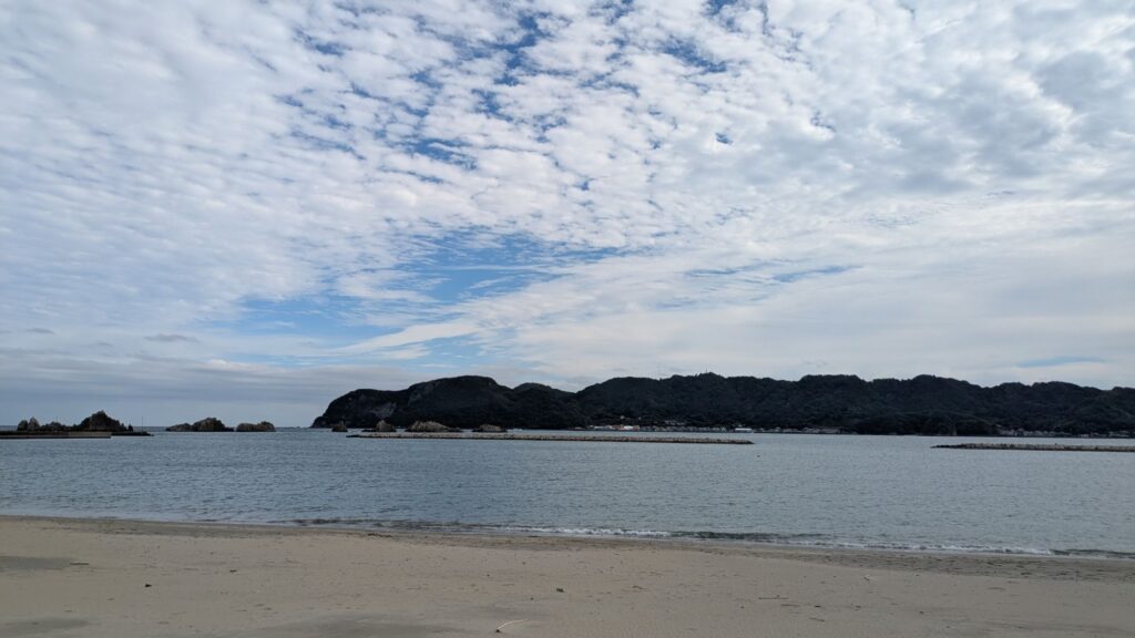 一番外の橋杭岩よりアウトに出れば少し吹いてるけどジャストアンダー