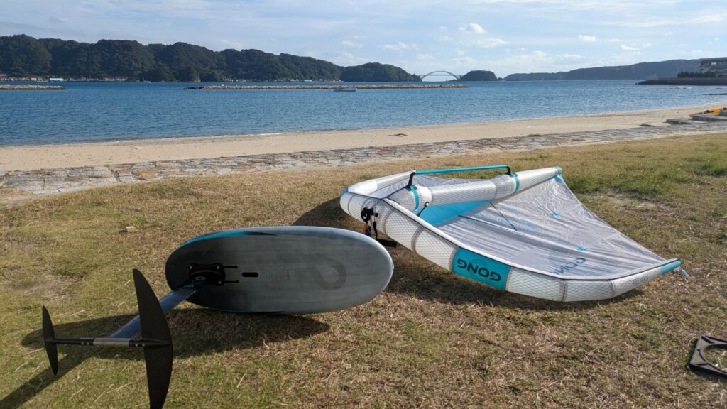 でも残念ながらもう波はなくなっちゃってたので橋杭でウイングフォイルに変更する