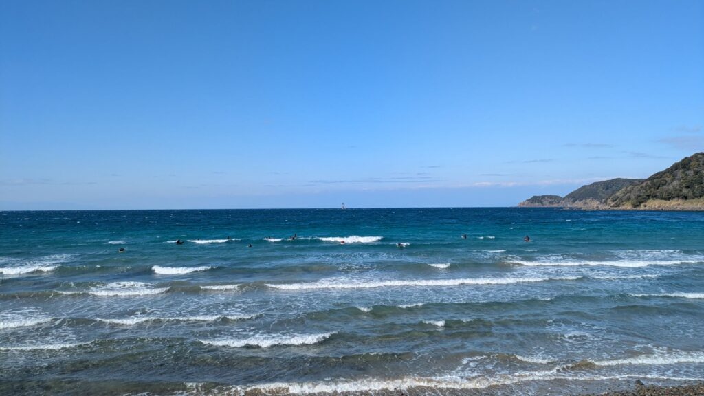 波はかなり小さめ。ギリギリできそう。昨日に比べれば、かなり人も少ない