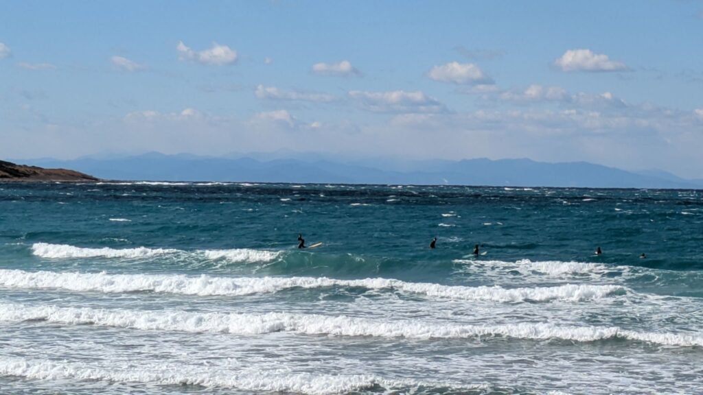 産湯ビーチの端から端まで、3本繋いでだいたい70mぐらいのロングライドができた。産湯では最長かも?