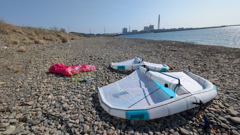 テトラ近くは風が弱くて波もさほどない。ウイングもバーストはしてなさそうなので回収できれば浮いて帰って来れるかもしれない